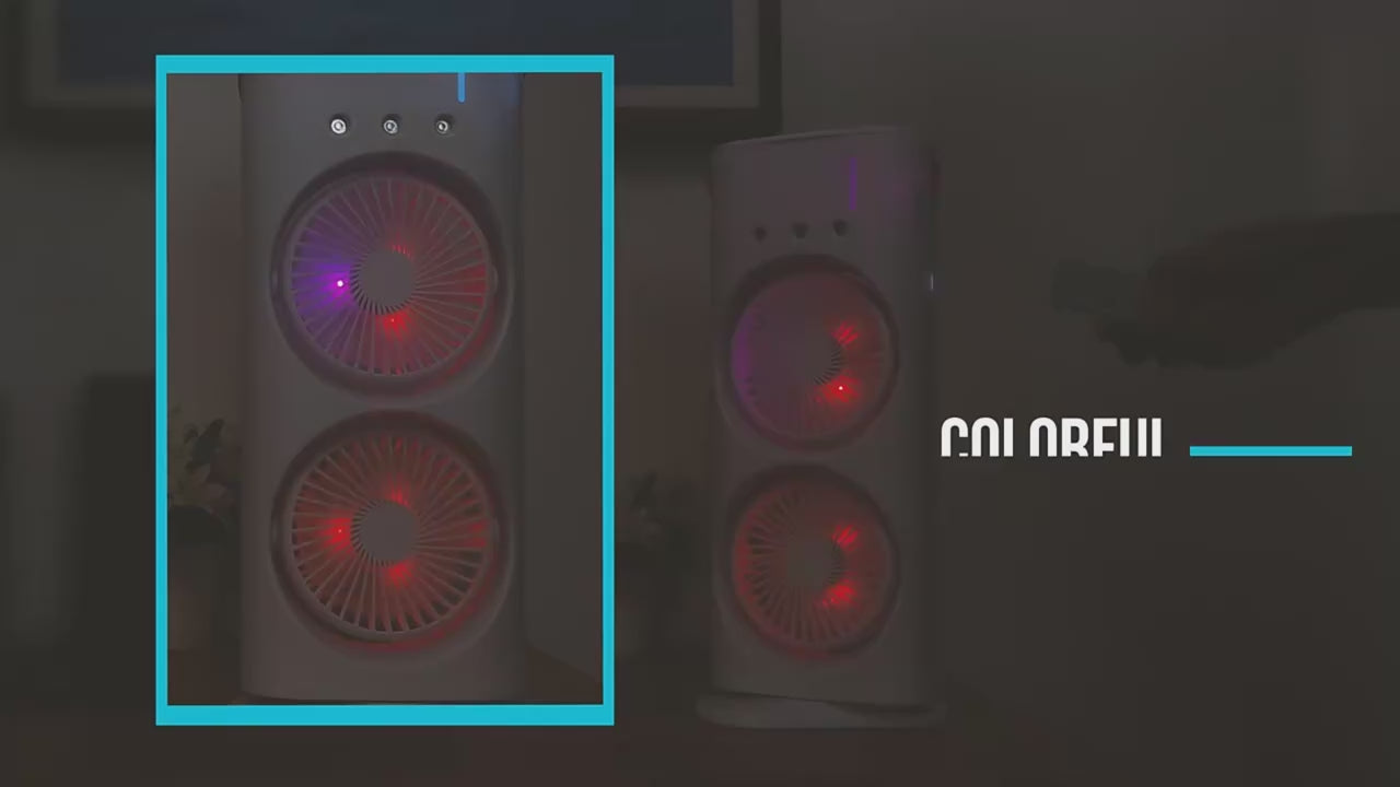 ✔ LED Color-Changing Light Rings – Stylish RGB lighting around each fan adds a relaxing, modern aesthetic, perfect for night use or decor.