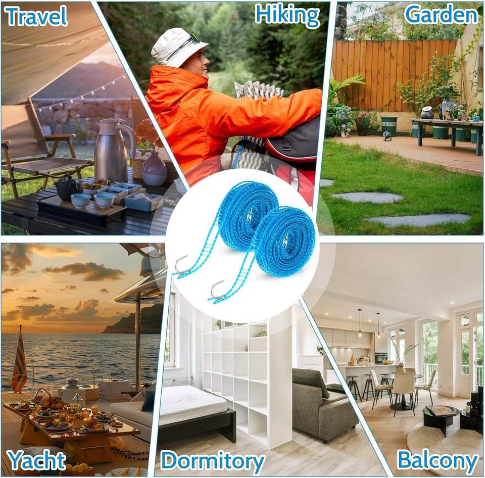 The stainless steel hooks at both ends make it easy to install anywhere — between trees, poles, or balcony railings. Lightweight and compact, it’s also ideal for travel, camping, or balcony drying. 🌞🏕️